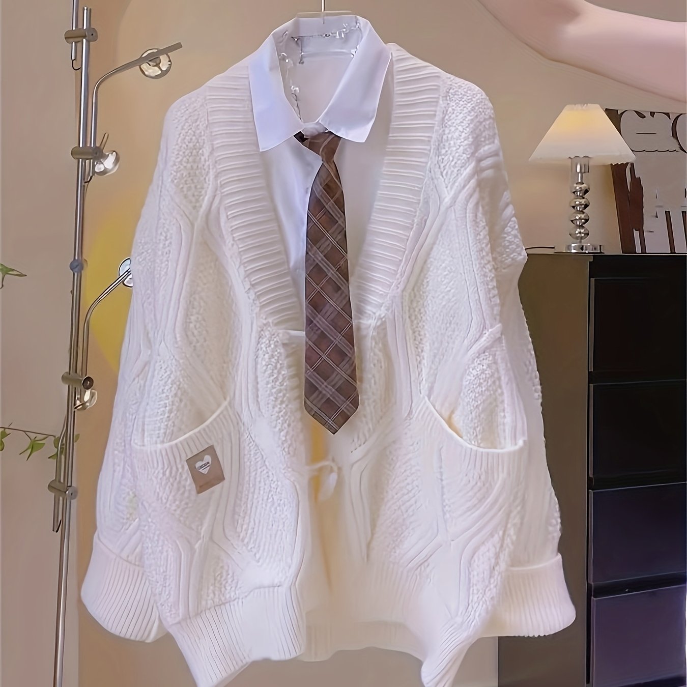 TEMU 세련되고 트렌디한 한국 스타일의 여성용 루즈핏 스웨터 가디건. 게으른 가을, 겨울 시즌에 완벽합니다. 2025년 신상 모델은 달콤하고 젊은 분위기의 고품질 탑, 단색, 그리고 아름다운 케이블 V넥 디자인을 특징으로 합니다.