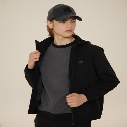 헤지스 골프 블랙 남성 후드 탈부착 바람막이 (HUJU4C601BK)