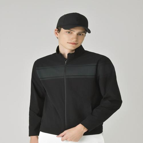 헤지스 골프 [ESSENTIAL]블랙 남성 컬러 블록 홑겹 바람막이 (HUJU5C901BK)