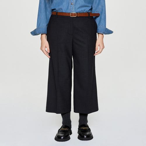 헤지스 여성 [SUMMER WOOL] 울 블렌드 크롭 세미와이드 슬랙스 차콜그레이 (HSPA5D813CG)