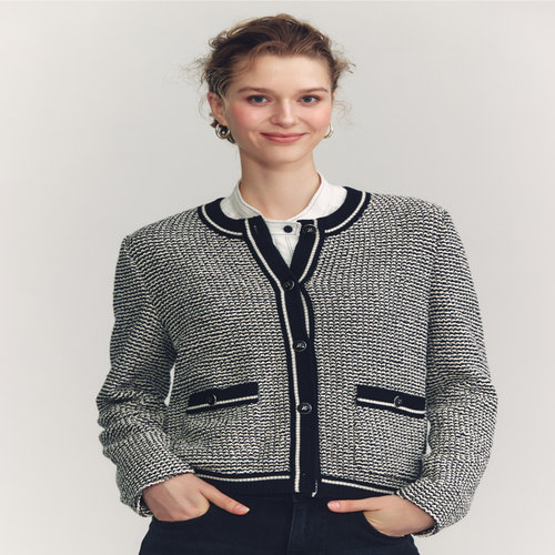 [TAG가 499000원]헤지스 여성 25SS 스테디셀러트위드블랙 라운드넥 면혼방 자켓 WSJA5B205BK