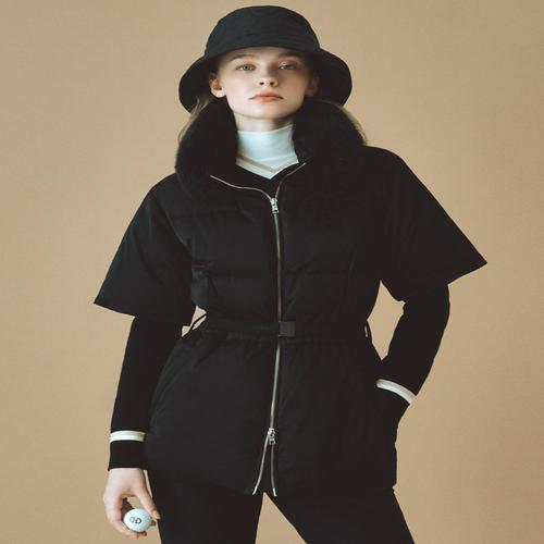 헤지스 골프 여성 블랙 여성 중량 스윙 구스다운 반팔 점퍼 (HWJU4D713BK)