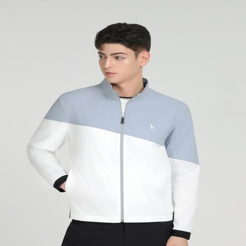 헤지스 골프 [ONLINE EXCLUSIVE] 그레이 남성 컬러블럭 홑겹 경량 점퍼 (HUJU5B901G1)