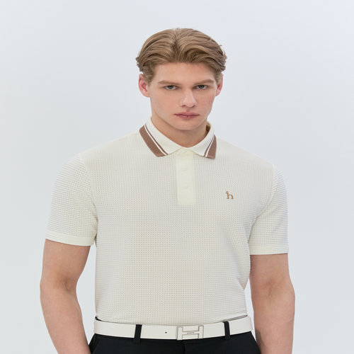 헤지스 골프 아이보리 남성 카라 배색 포인트 카라 티셔츠 (HUTS6B314IV)