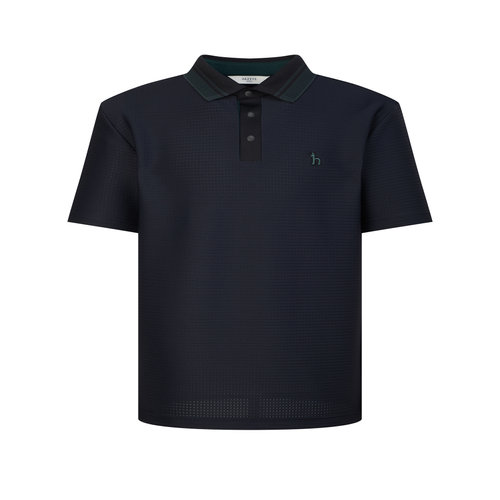 [헤지스 골프] [25SS] HUTS5B353N3 네이비 남성 우븐 펀칭 반팔 카라 티셔츠