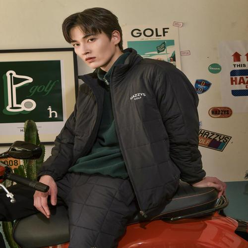 헤지스 골프 [ONLINE EXCLUSIVE][Afterhours캡슐] 블랙 남성 스퀘어 퀼팅 패딩 점퍼 (HUJU4D992BK)