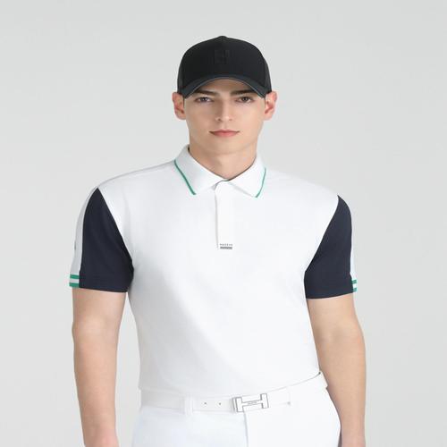 헤지스 골프 화이트 남성 소매 배색 반팔 카라 티셔츠 (HUTS5B413OW)