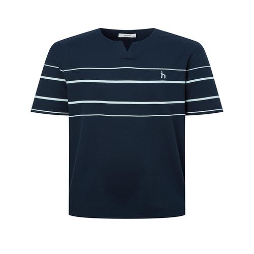 헤지스 남성 [AIRY TWILL] 네이비 슬릿넥 컬러블럭 반팔 티셔츠 (HZTS5B547N2)