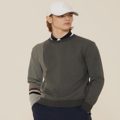헤지스 골프 그레이 남성 컬러블록 라운드 풀오버 니트 (HUSW4C611G2)
