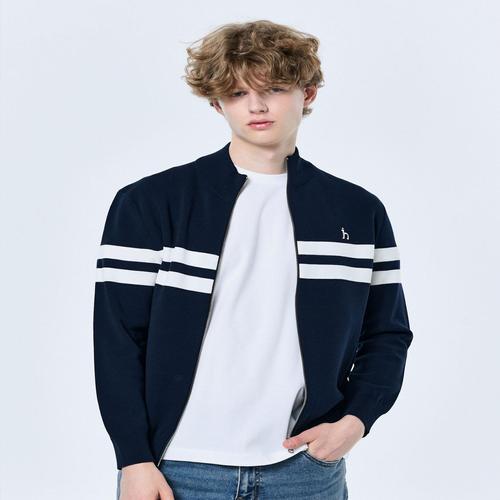 헤지스 남성 블루 컬러블록 울 집업가디건 (HZSW4D331B2)