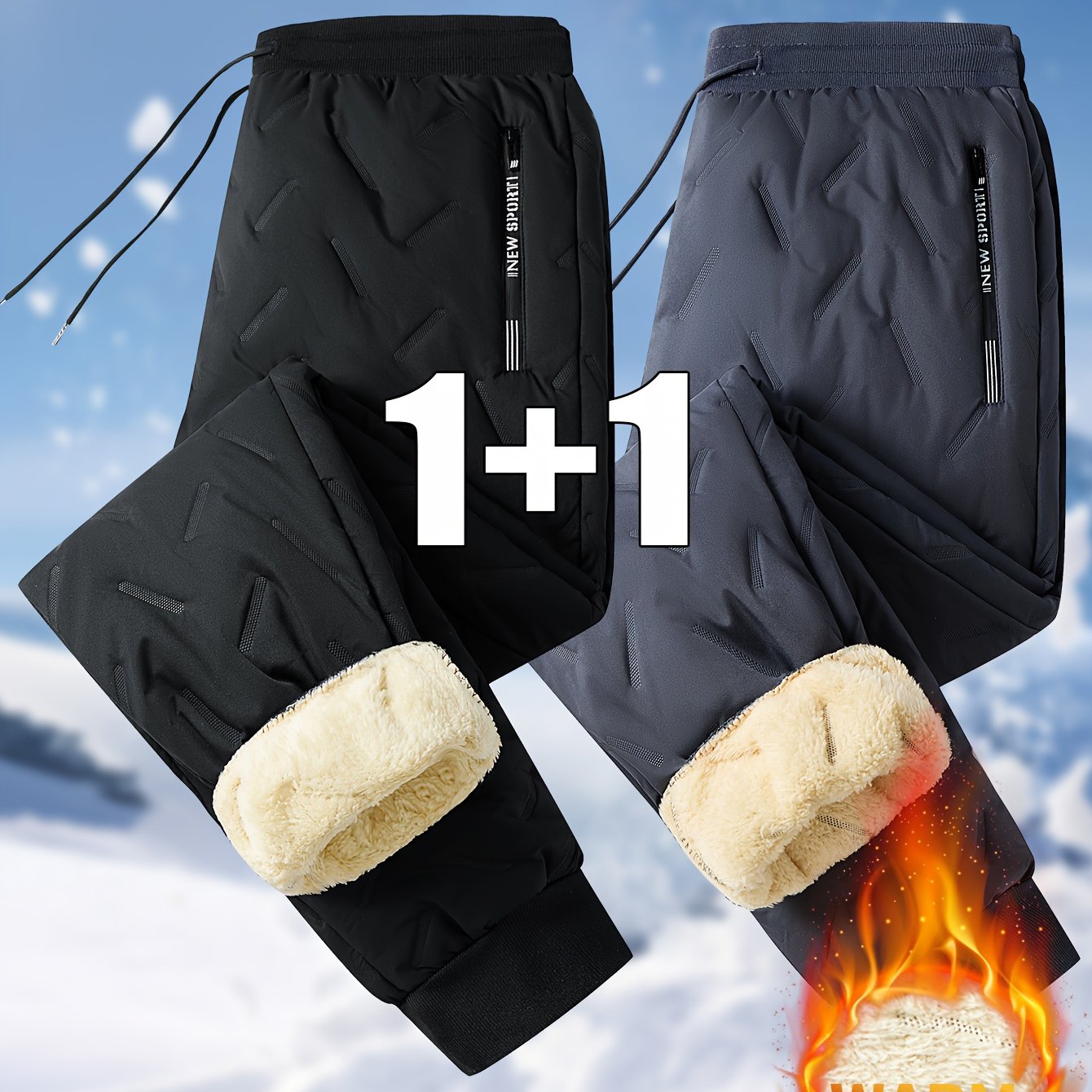 TEMU 남성용 안감 가을/겨울 바지 2팩 - 따뜻하고 두꺼운 지퍼업 캐주얼 스포츠 팬츠, 포켓 포함, 스포츠 및 레저용, 남성 스웨트팬츠, 삼선 스포츠 팬츠, 남성 조거팬츠, 운동용 바지, 활동적인 디자인, 따뜻한 안감, 내구성 있는 소재, 액티브 라이프스타일|스포츠|냉장고바지|남자바지