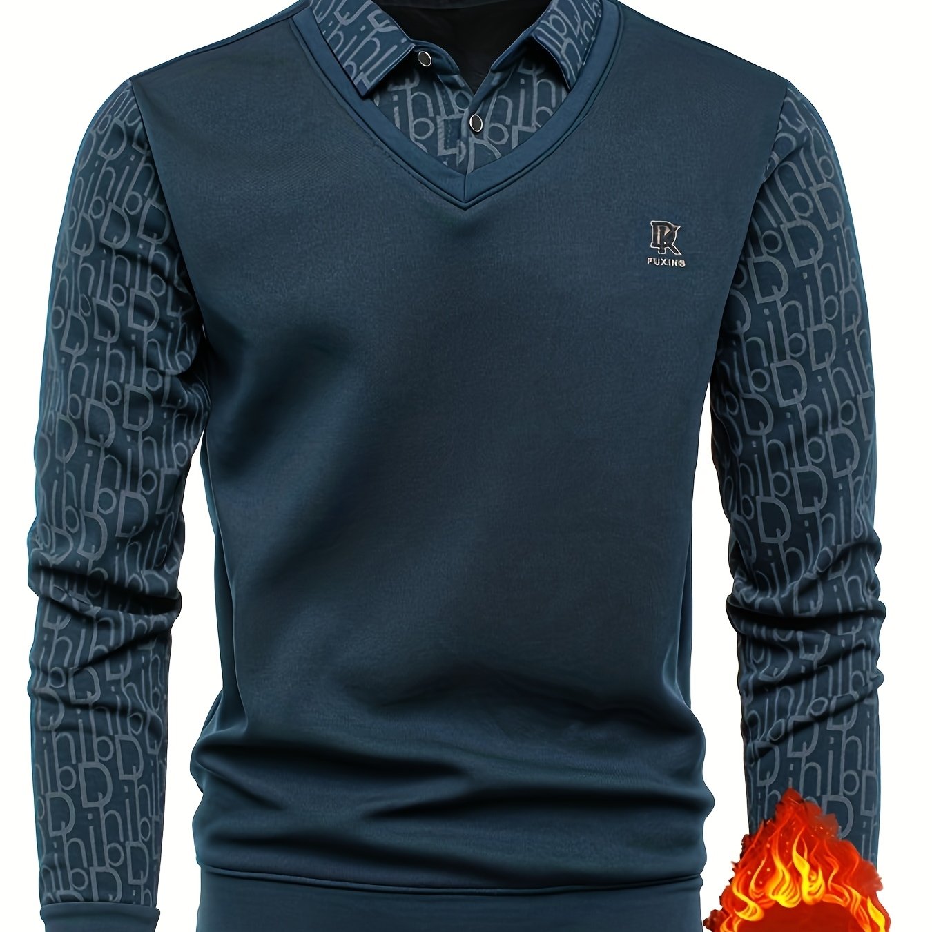 TEMU 남성용 새로운 가을/겨울 골프 셔츠. 플리스 안감과 페이크 투피스 조끼 디자인, 가슴에 라인스톤 레터 장식, 고급스러운 안감으로 제작되었습니다. 일상적인 외출에 적합하며 부드럽고 따뜻하며 캐주얼 웨어로도 활용하기 좋습니다.