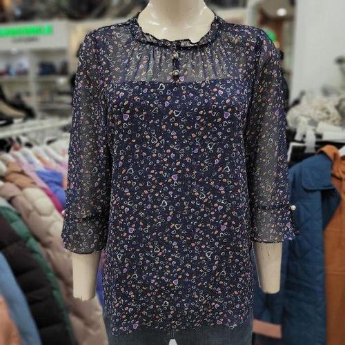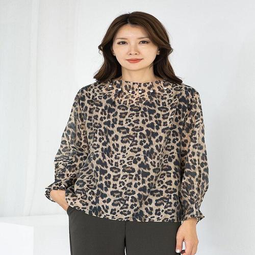 [모슬린]엄마옷 쉬폰 터틀 호피 긴팔블라우스 613FGH167 마담/중년여성/빅사이즈/50대/60대