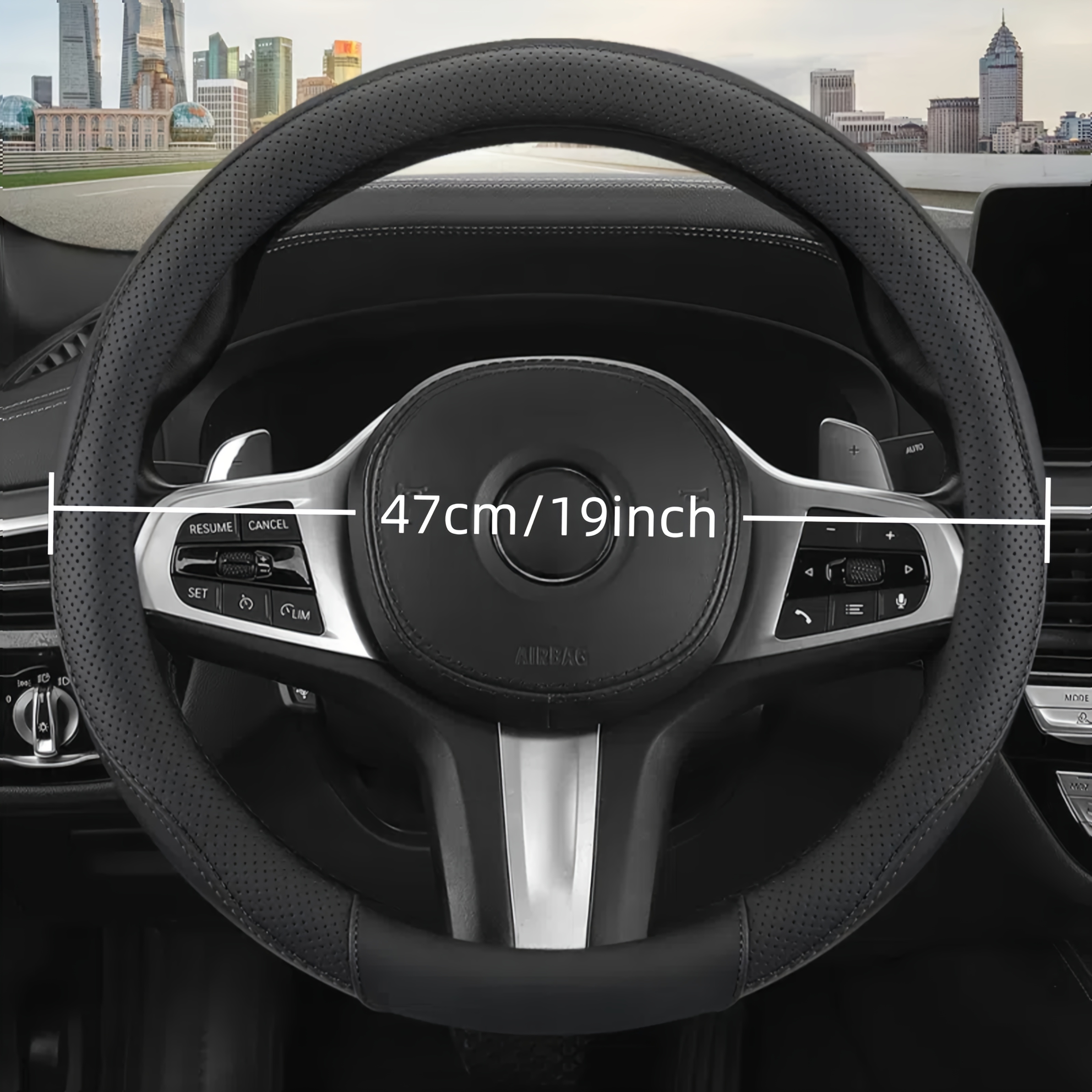 TEMU 대형 트럭, 공사용 차량, 화물 트럭용 스티어링 휠 커버, 16인치~20인치 자동차 핸들에 적합, 통기성 PU 가죽 및 나파 PU 가죽 제작, 미끄럼 방지, 내마모성 소형 PU 가죽 딩 마사지 그립, 자동차 내장 액세서리