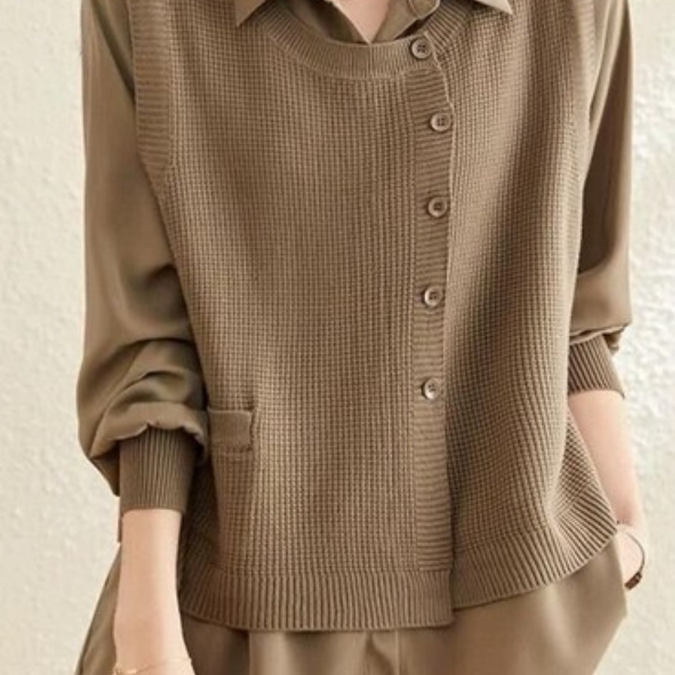 TEMU 여성 카라넥 캐주얼 니트 레이어드 셔츠 블라우스 H671