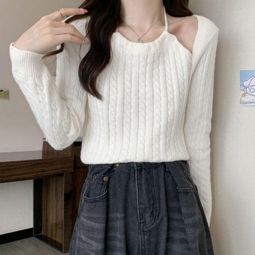 [옷자락]여자 홀터넥나시 골지 레이어드 꼬임 슬림핏니트 세트