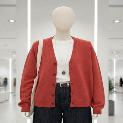 가을 겨울 스큐 버튼 가디건 V넥 스웨터 여성 니트 긴팔 상의 한국 루즈핏 솔리드 캐시미어 여성 스웨터