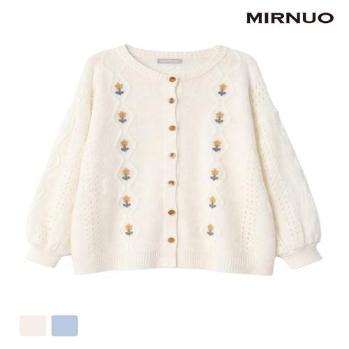 [미르누아]미르누아 들꽃 루즈핏 가디건 라운드넥 펀칭 니트