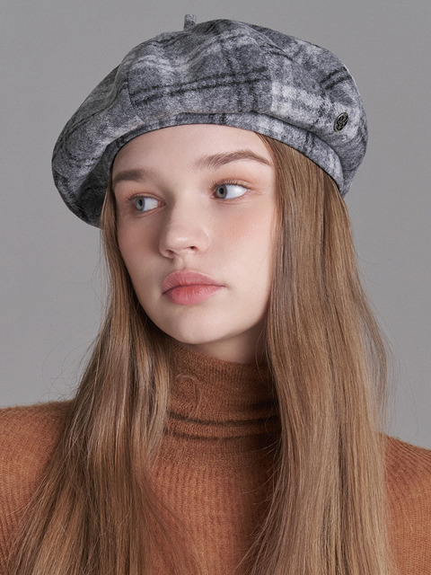 [화이트샌즈] 퍼플라벨 이탈리아 울 글렌체크 숏 보닛햇 파올라