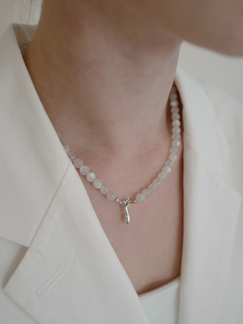 이아이 화이트 투명 크리스탈 비즈 초커 목걸이