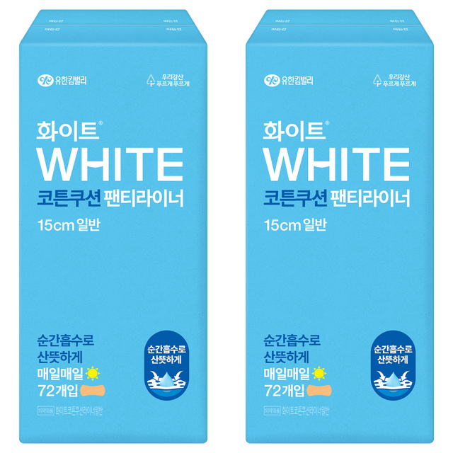 화이트 코튼 팬티라이너, 일반, 90개입, 2개