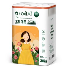 한예지 3겹 데코 소프트 펄프 화장지, 30m, 30롤, 1개