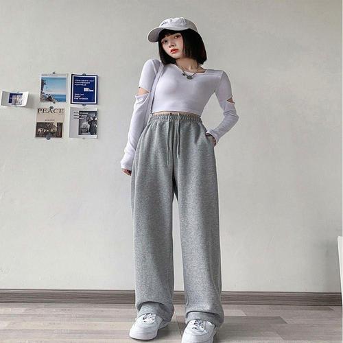 바지 회색 니트 캐주얼 맨투맨 트레이닝 하이웨스트 여자바지 워즈 와이드 스트레이트 슬림핏 슬랙스 면~