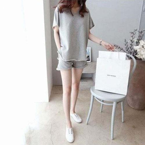 [오너클랜]인기상품 컷팅 맨투맨 추리닝 반바지 세 회색 디테일 여자 반팔 [WFLNMI3_260205]