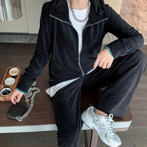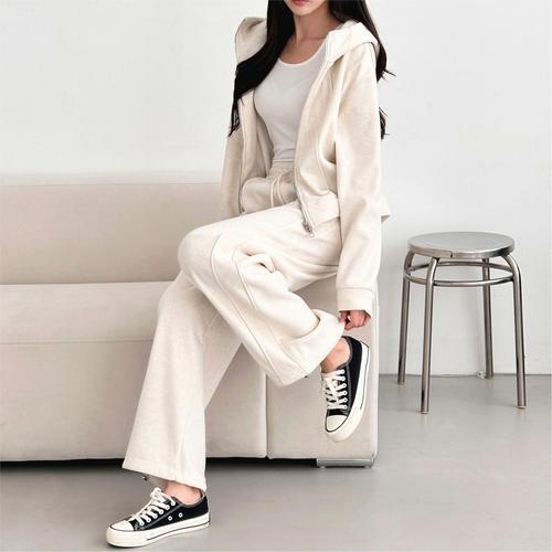 [에이치플러스몰]벨벳 후드집업 밴딩 와이드팬츠 트레이닝 셋업 실내외