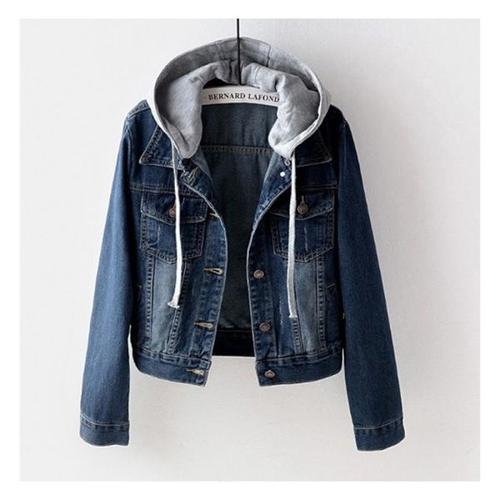 빈티지 데님 재킷 여성 봄 가을 코트 찢어진 후드 아우터 2025 윈드브레이커 베이직 코트 남자친구 여성 청자켓