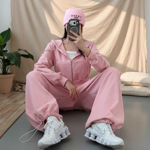 [옷자락]여성 힙한 크롭 후드티와 와이드 팬츠 세트