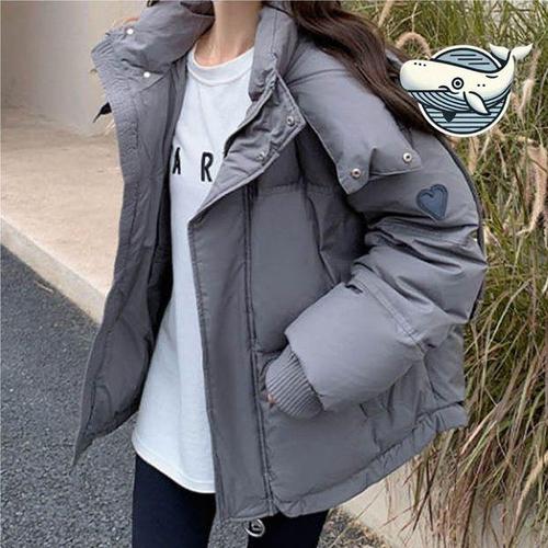 AREVI겨울 숏패딩 남녀공용 순색의 루즈핏 후드 캐주얼 베이직 커플 다운 점퍼