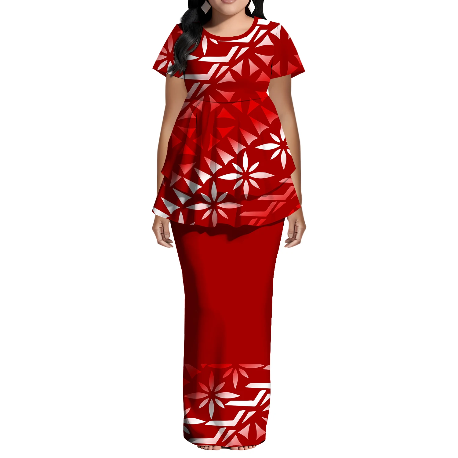 TEMU 플러스 사이즈, 플러스 사이즈 여성 정장, 라지 로즈 프린트 스퀘어 넥라인 리본, 휴가용