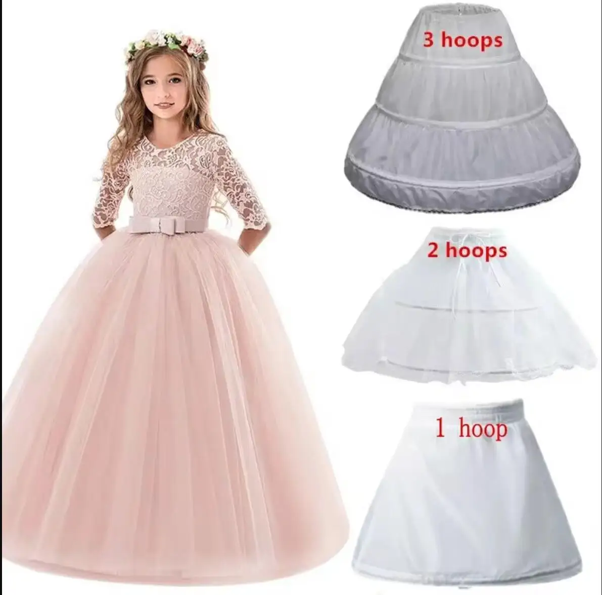 여아용 크리놀린 페티코트, 후프 아래 치마, 짧은 흰색 속치마, A 라인 볼 가운, 어린이 페티코트