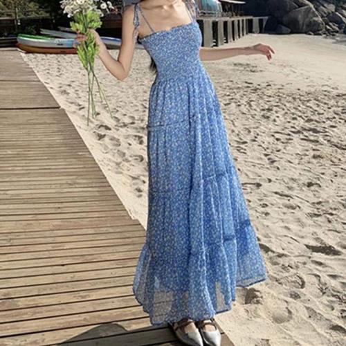 [오너클랜]인기상품 여자 휴양지바캉스룩 스모크밴딩 끈나시 플레어원피스 [WF04A18_250915]