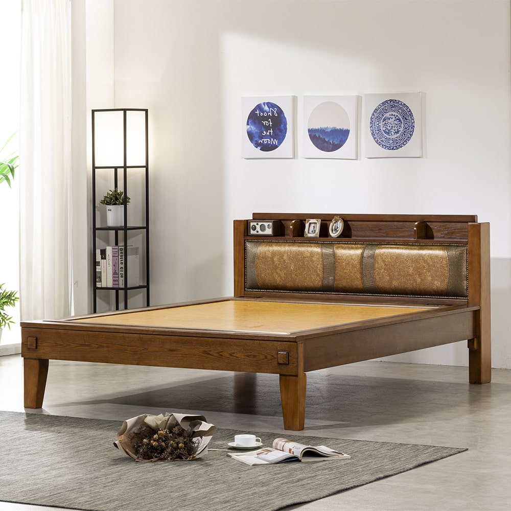 편백(히노끼) 평상형 분리형 선반형헤드 퀸침대 P-BE-Q-010