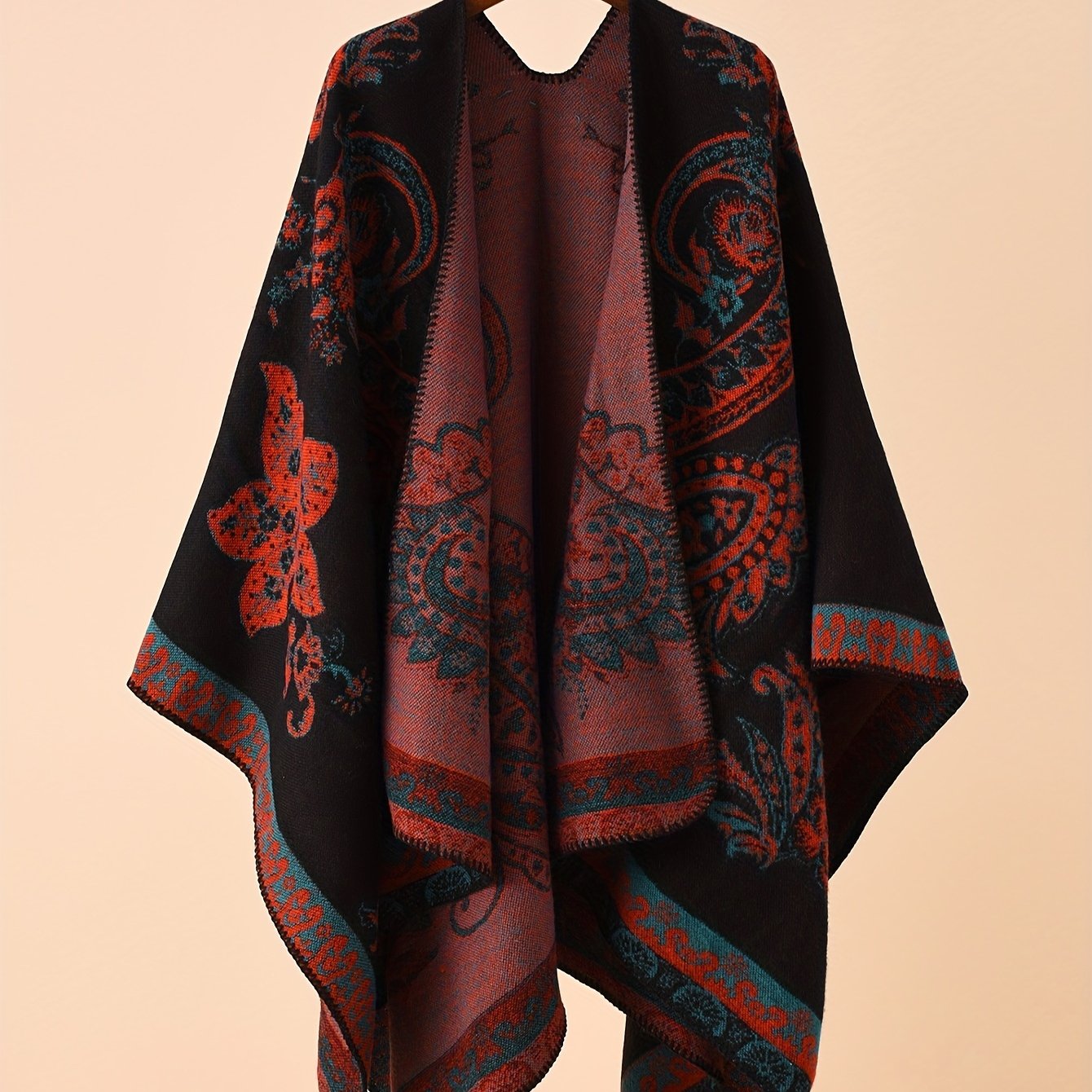 TEMU 플러스 사이즈 에스닉 패턴 숄 탑, 빈티지 웜 오픈 프런트 커버 업 탑 겨울 & 가을, 여성 플러스 사이즈 의류
