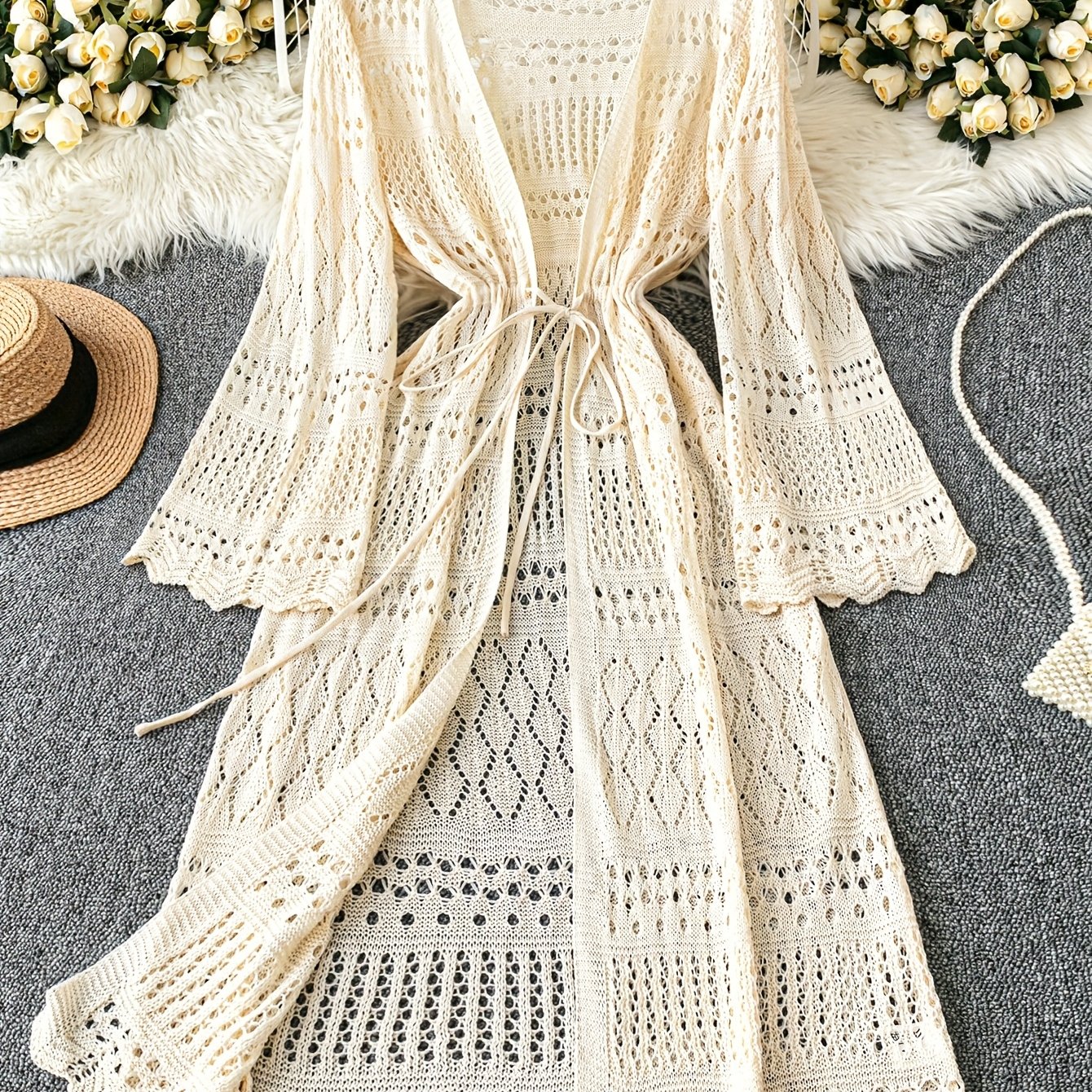 TEMU 휴가용 우아한 소프트 롱 레이스 숄 가디건
