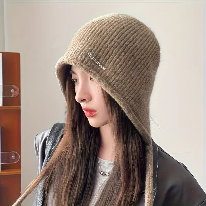 TEMU 우아한 니트 끈 달린 비니, 부드러운 플러시 울 겨울 따뜻한 모자, 여성용, 도시 테마, 데이 선물