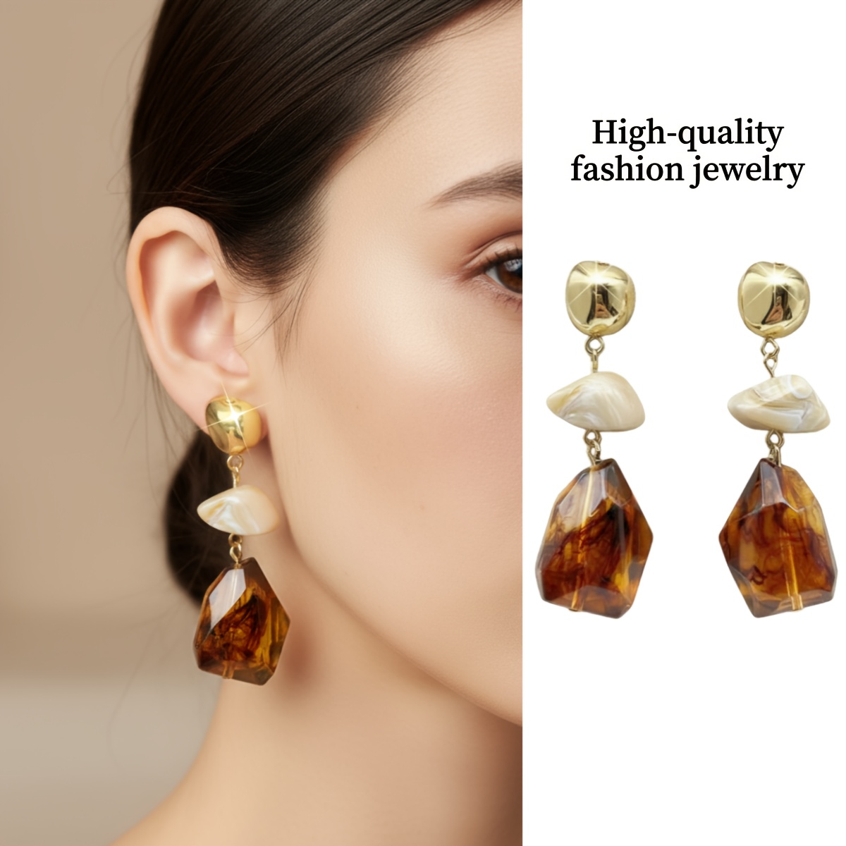 TEMU 1개 여성용 빈티지 물방울 귀걸이 - 대형 - 레진 느낌 비즈, 톤 & 악센트 - 일상, 파티, 결혼식, 연중 착용 가능한 우아한 드롭 - 보호 웨딩 & 크리스마스