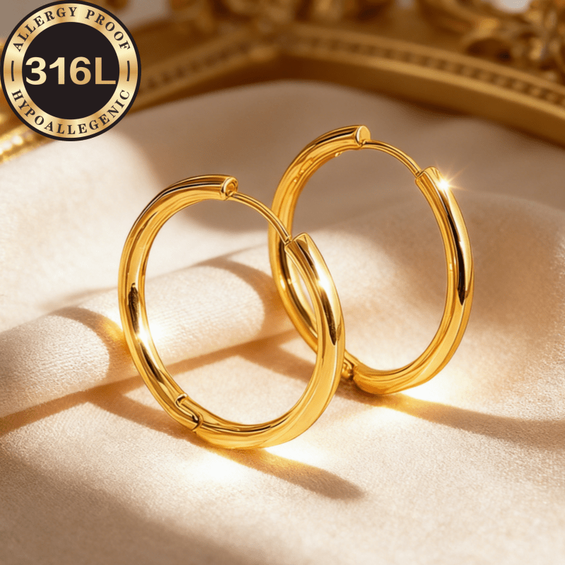 TEMU 알레르기 방지 스테인리스 스틸 후프 귀걸이, 18K 금도금, 변색 방지, 편안하고 다용도, 심플하고 우아한 고품질 패션 여성용 귀걸이 및 주얼리 액세서리, 데일리웨어나 파티에 적합, 여성을 위한 세련된 선물