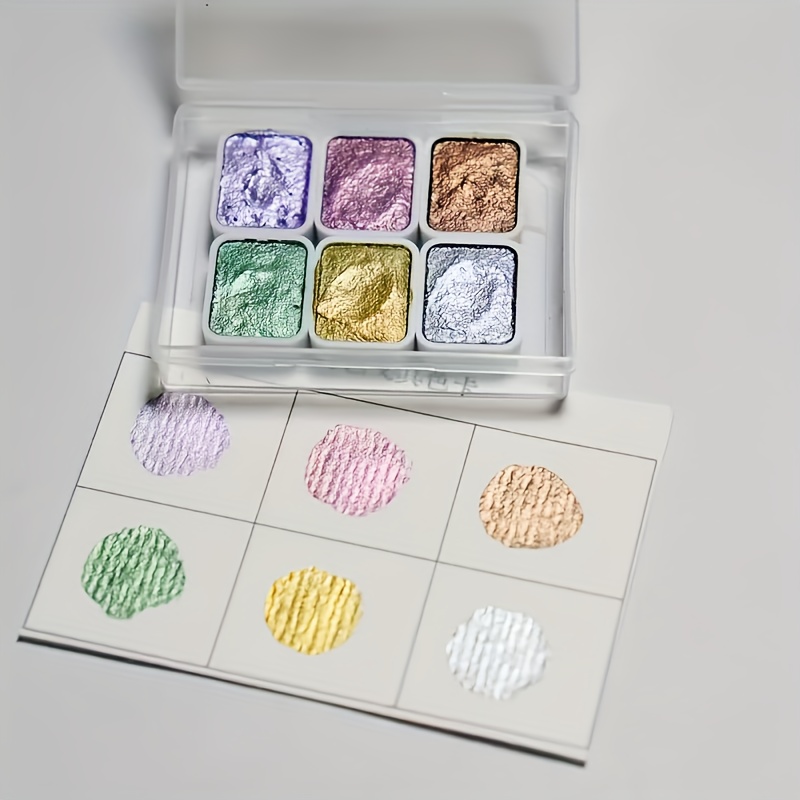 TEMU 1미니 세트 - 전문가용 아트 - 6색 진주 수채화 미니 페인팅 컬러 박스, 중국화, 탱카, 서예에 적합 - 컴팩트 투명 보관함 - 여행 및 일상 사용에 이상적 - 부활절, 죽은 자의 날, 할로윈, 추수감사절, 크리스마스, 가을, 개학 시즌 선물로 완벽한 다기능 미술 용품 미니 세트|캘리그라피