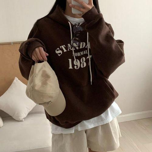 [유야]캐주얼 1987 레터링 후드티 맨투맨 박스티 -TS0922H- 빅사이즈 루즈핏 여성 가을