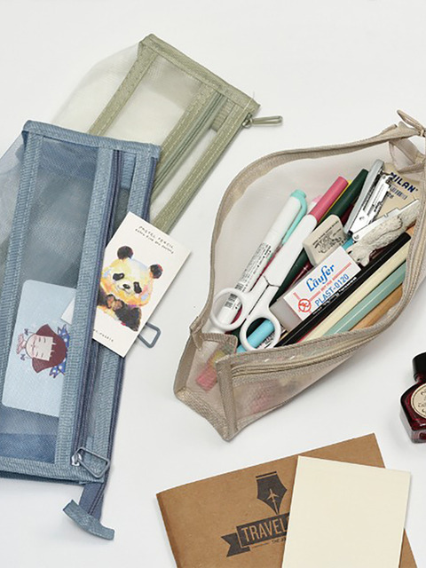 2단 메쉬 삼각 중학생 고등학생 대학생 필통 파우치