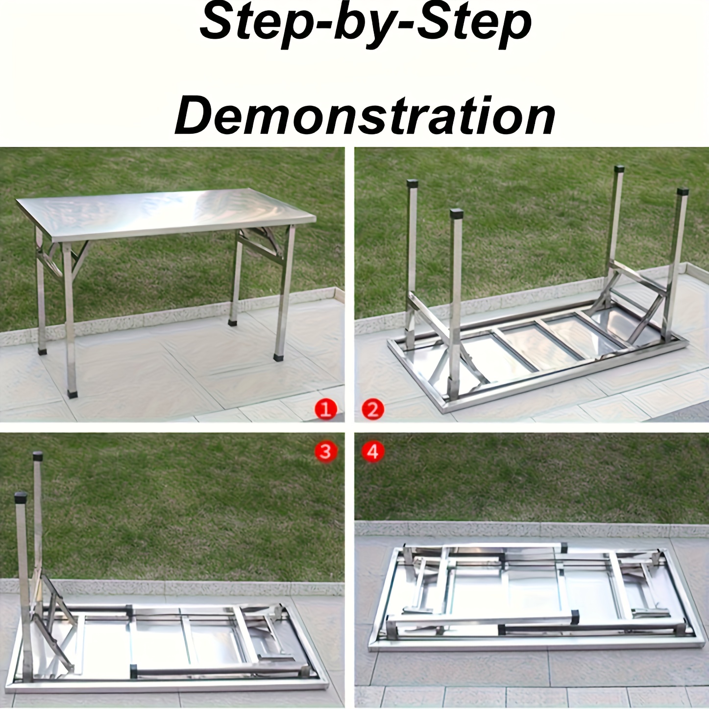 TEMU 신형 올인원 스테인리스 스틸 휴대용 테이블, 흔들림 없는 강화 설계, 캠핑, 이동식 가판대, 주방 작업에 적합