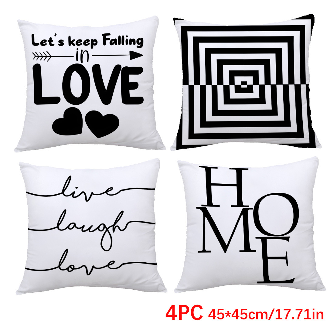 TEMU 4개 세트, 단면 프린트 베개 커버, "사랑과 희망" 흑백 텍스트 기하학 패턴 베개 커버, 17.71 X 17.71인치, 거실 소파 및 침실용 홈 데코 베개 커버, 베개 속통 미포함