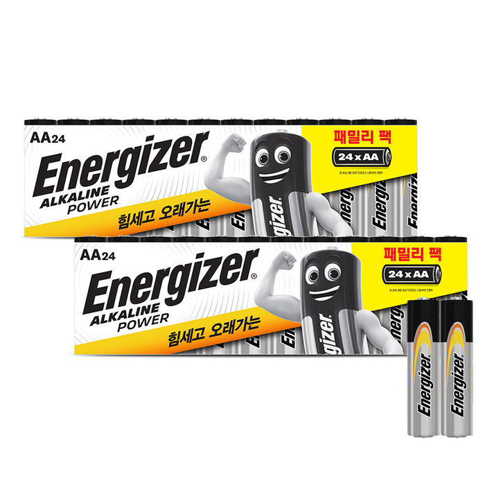 에너자이저 [카드추가5%] 에너자이저 알카라인 패밀리팩 건전지 AA 24입x2개(48입)