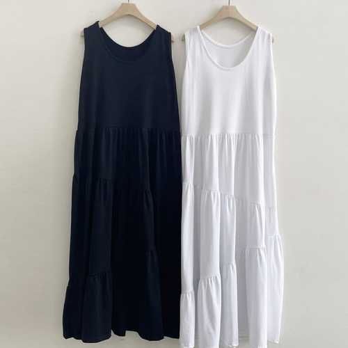 여성 민소매 3단 캉캉 루즈핏 롱원피스 NTT-WDR-20747-소라