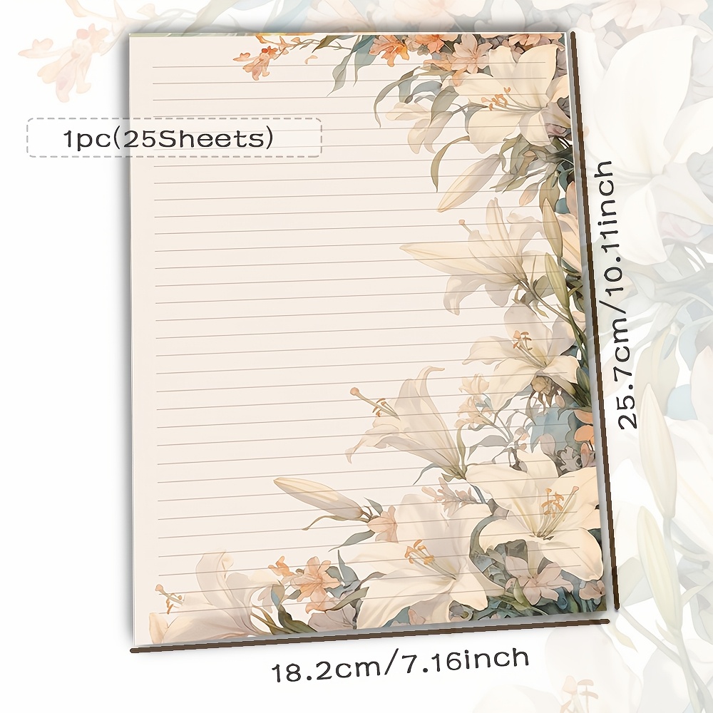 TEMU 1개 (25/50매) 흰색 백합 꽃 라인 격자 노트, 꽃이 핀 백합이 특징입니다. 이 문구는 노트, 학습 및 사무용으로 완벽합니다. 접착제가 없는 단면 찢을 수 있는 초안 용지 포함.