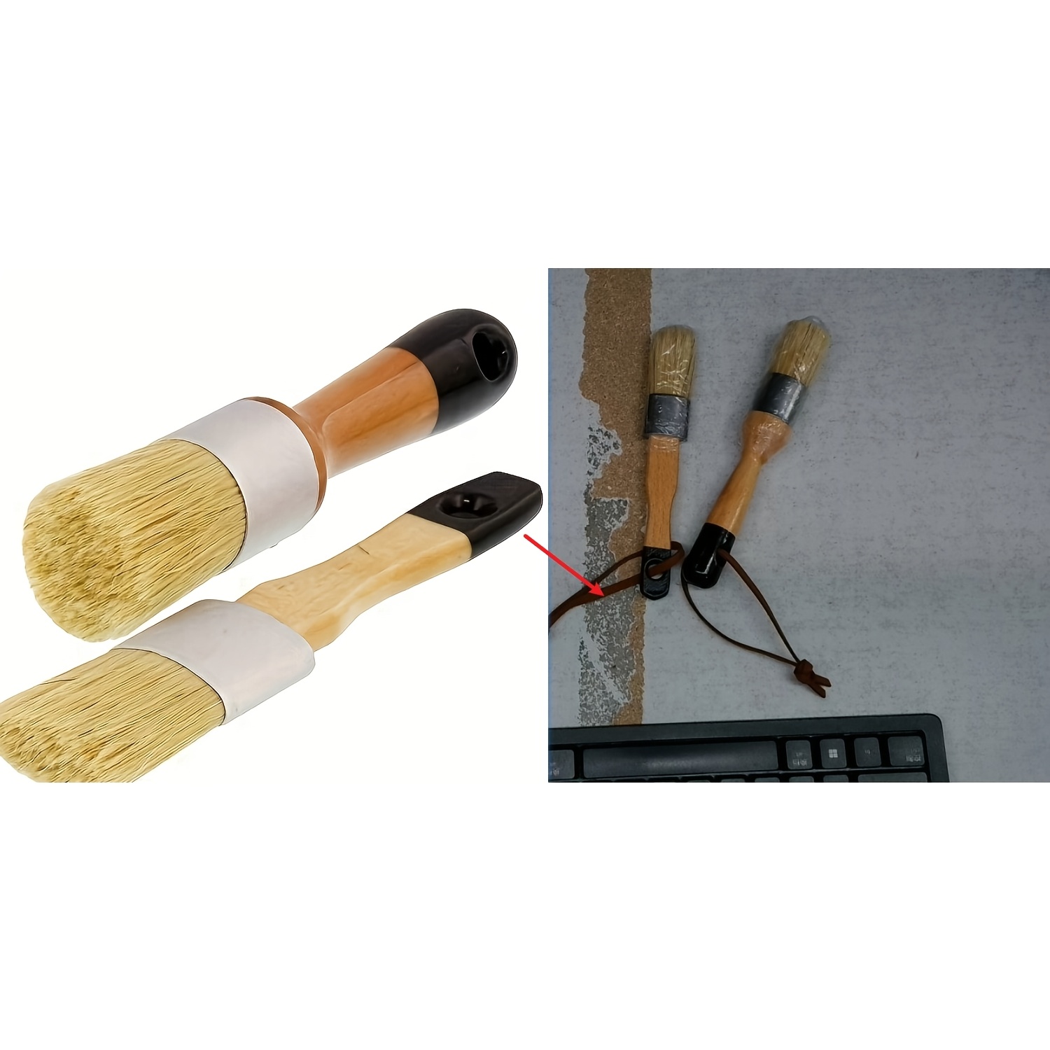 TEMU 랜야드 포함 천연 강모 초크 페인트 브러시 2개 - Annie Sloan, 컨트리 스타일 페인트, 라텍스 페인트, 왁스 페인트, 가구 복원, 공예에 적합 - 털 빠짐 없음, 미끄럼 방지 청록색 캡, 내구성 있는 나무 손잡이, DIY 가구 장식, 부드러운 도포, 견고한 그립, 빈티지 스타일 도구, 홈 데코 및 공예 애호가에게 이상적